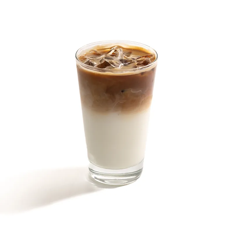 لیوان 360 میلی لیتر، قهوه سرد متشکل از اسپرسو، شیر و تکه های یخ