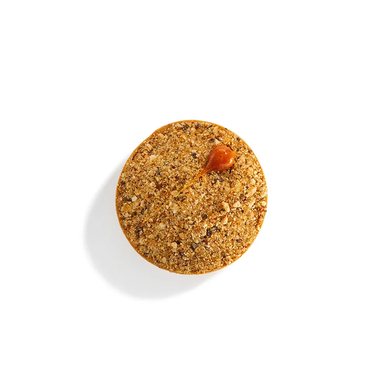 مناسب برای یک نفر- قطر حدودأ 9 سانتی متر. نان تارت ترد شکلاتی پر شده با گنش شکلات که در میان آن کارا ...