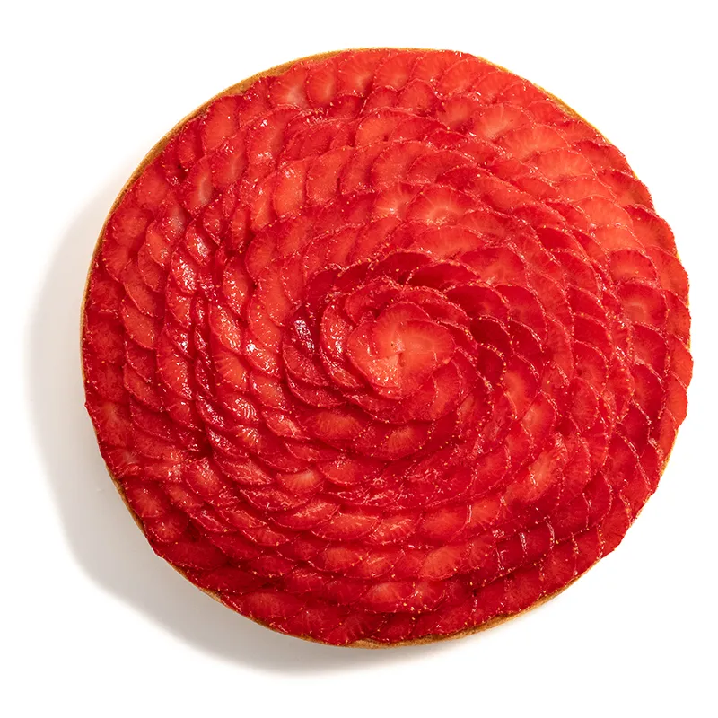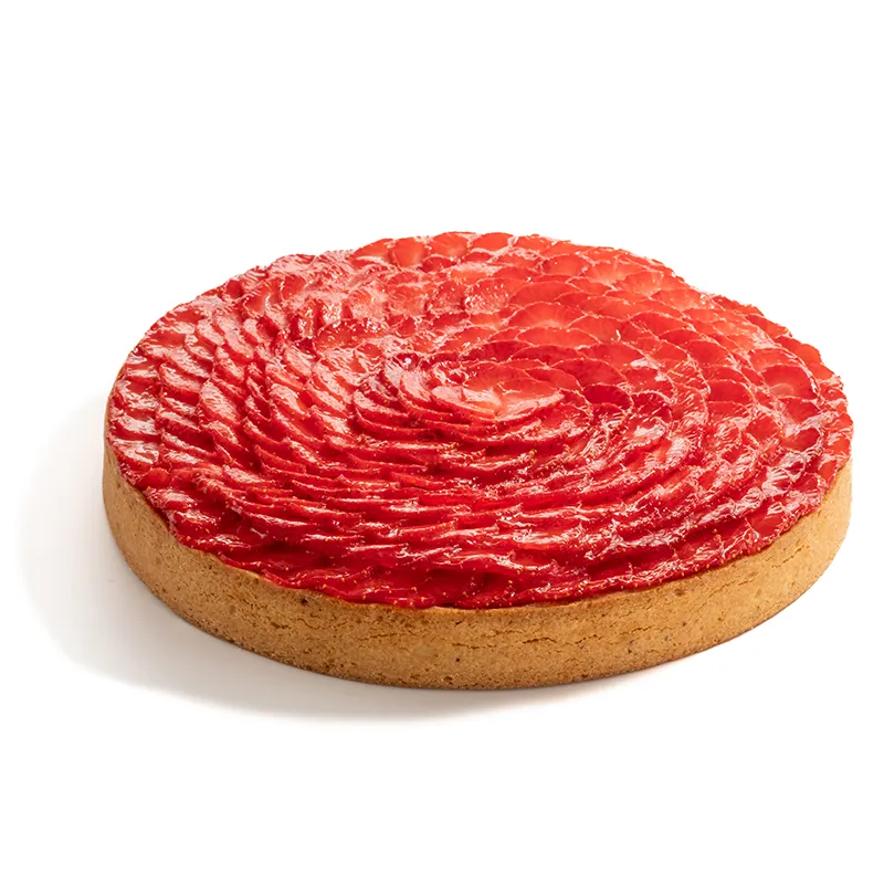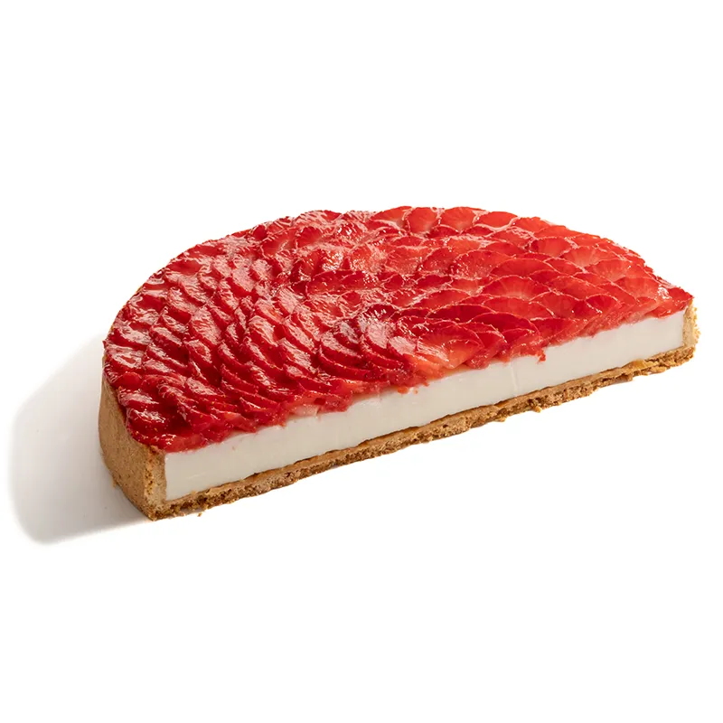 مناسب برای 8 تا 9 نفر- قطر حدودأ 22 سانتی متر. نان تارت ترد با تکههای پسته که داخل آن با یک لایه پاناکوتا پوشانده شده و با توتفرنگی تازه تزئین می شود.